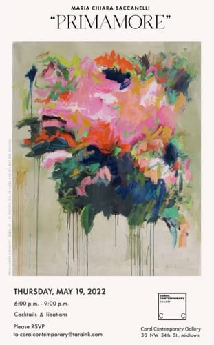 “PRIMAMORE” May 19th, 2022 Coral Contemporary Gallery is presenting the must-see exhibition “PRIMAMORE“ by Argentinian abstract expressionist Maria Chiara Baccanelli. Located in Midtown, the gallery was founded