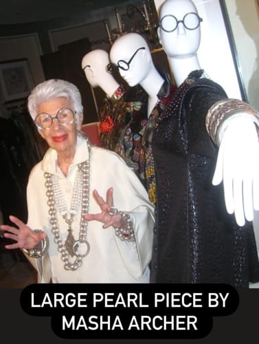 Masha Archer resided in San Francisco since 1967. She devoted her talents to jewelry design. She has been named “Art-to-Wear Jewelry Designer, USA” by New York Fashion Group, and has shown her jewelry in museums across the country. Her jewelry is collected by many of the Elite in Hollywood, such as Laura Bush, Joan Collins, Oprah Winfrey, Erin Brockovich, Barbara Walters, The movie Sex and the City, and many others.