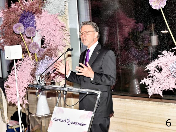 The two-part evening began with an intimate Champions Dinner at Bar SixtyFive, where guests experienced a specially curated meal. Princess Yasmin Aga Khan, who founded the event 36 years ago in honor of her mother Rita Hayworth, who passed away with younger-onset Alzheimer’s, opened the evening with remarks and an introduction to renowned flutist and former CBS News correspondent Eugenia Zukerman. Aga Khan told the crowd, “I am grateful to people like Eugenia who bring Alzheimer’s out of the shadows.” Zukerman performed Debussy’s Syrinx on the flute, which she followed with remarks about her journey living with Alzheimer’s disease, as well as a moving reading from her forthcoming memoir Like Falling Through a Cloud, which brought the crowd to its feet.