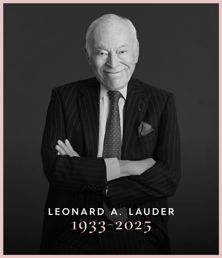 The family asks that for those who wish, memorial donations be made to the Breast Cancer Research Foundation to continue the lifesaving research that will allow us to realize the world Mr. Lauder tirelessly championed: a world without breast cancer.